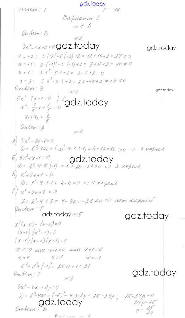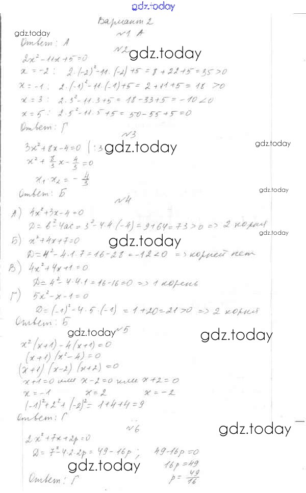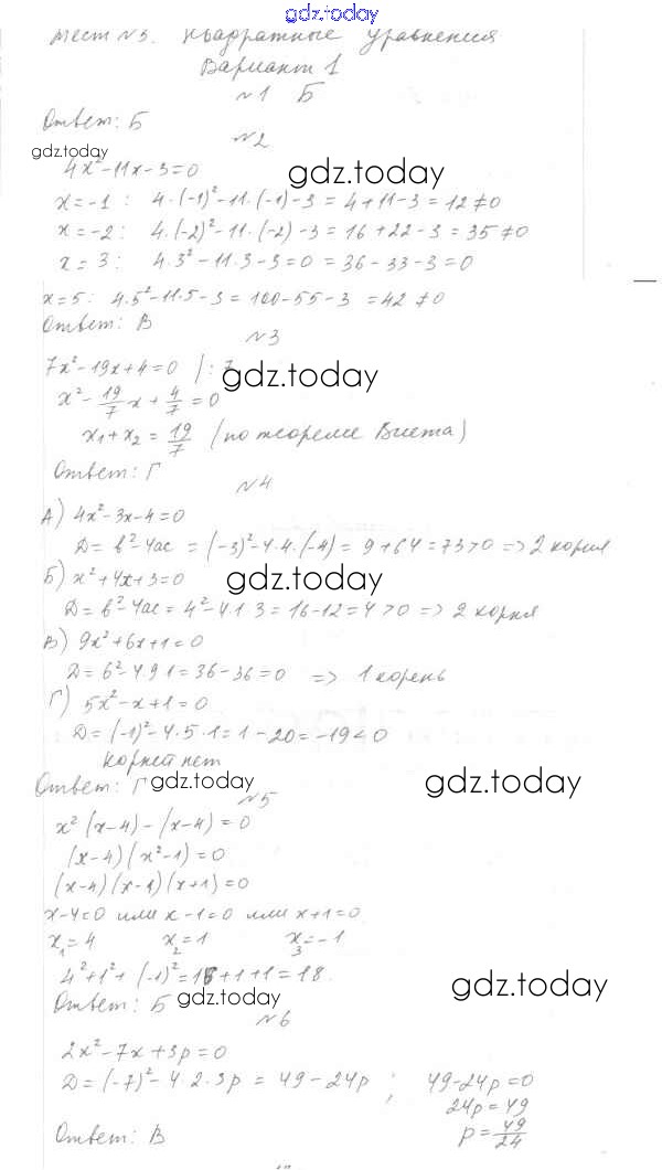 На страницах сайта gdz.today вы найдете учебный и вспомогательный материал, направленный на улучшения знаний школьной программы. ГДЗ - онлайн мир знаний 8 класс. Решение к тестам Тест 5 Тестам по Алгебре для 7-9 класса Мордкович, Тульчинкая Базовый уровень Мнемозина 2013