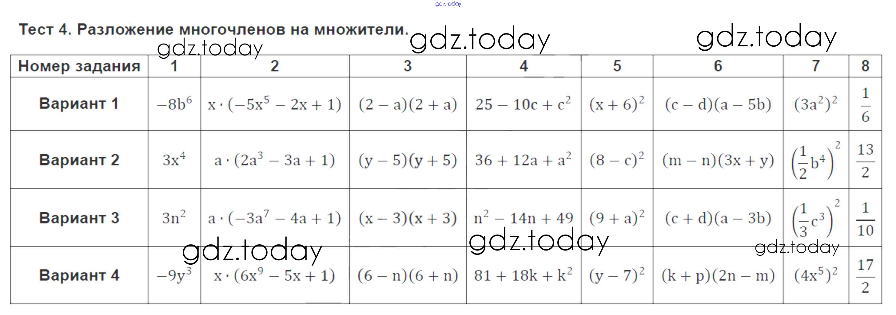 На страницах сайта gdz.today вы найдете учебный и вспомогательный материал, направленный на улучшения знаний школьной программы. ГДЗ - онлайн мир знаний Основные тесты Решение к тестам 4 Тематическим тестам по Алгебре для 7 класса Ткачева Просвещение 2018