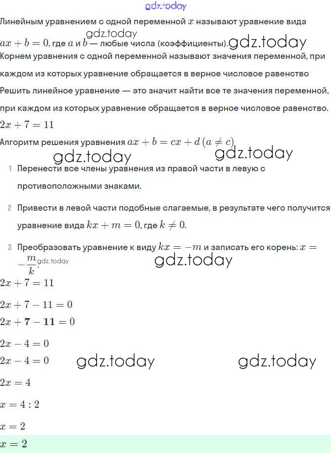 На страницах сайта gdz.today вы найдете учебный и вспомогательный материал, направленный на улучшения знаний школьной программы. ГДЗ - онлайн мир знаний §4. Линейное уравнение с одной переменной Решение. Глава 1. Математический язык и математическая модель 7 Учебнику по Алгебре для 7 класса Мордкович Базовый уровень Мнемозина 2013