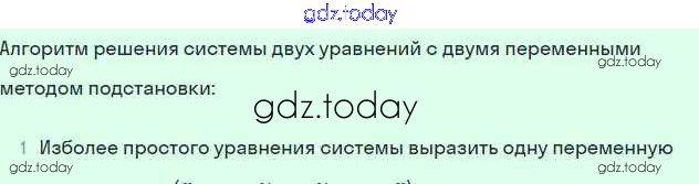 На страницах сайта gdz.today вы найдете учебный и вспомогательный материал, направленный на улучшения знаний школьной программы. ГДЗ - онлайн мир знаний §12. Метод подстановки Решение. Глава 3. Системы двух линейных уравнений с двумя переменными 1 Учебнику по Алгебре для 7 класса Мордкович Базовый уровень Мнемозина 2013