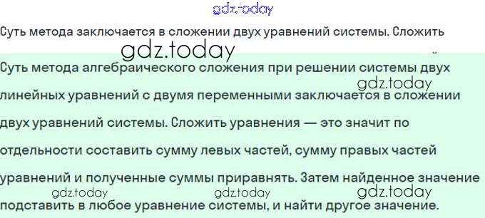 На страницах сайта gdz.today вы найдете учебный и вспомогательный материал, направленный на улучшения знаний школьной программы. ГДЗ - онлайн мир знаний §13. Метод алгебраического сложения Решение. Глава 3. Системы двух линейных уравнений с двумя переменными 1 Учебнику по Алгебре для 7 класса Мордкович Базовый уровень Мнемозина 2013