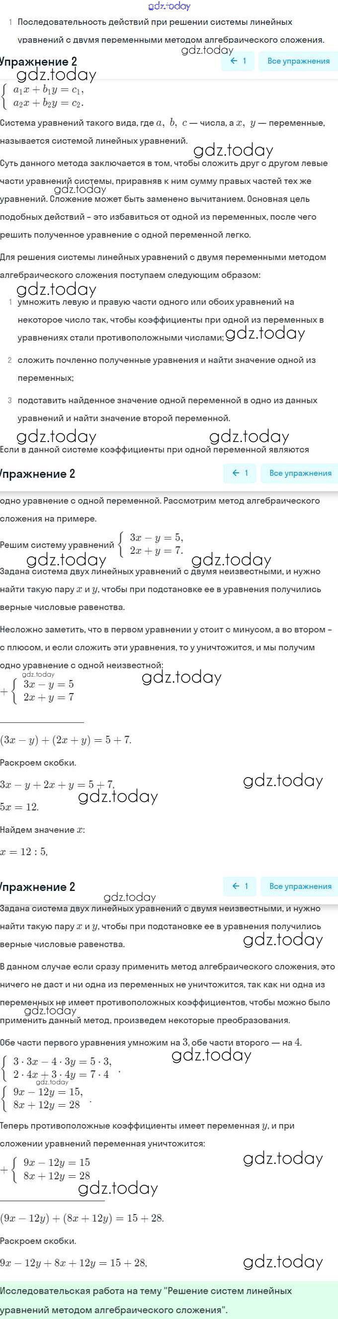 На страницах сайта gdz.today вы найдете учебный и вспомогательный материал, направленный на улучшения знаний школьной программы. ГДЗ - онлайн мир знаний Темы исследовательских работ Решение. Глава 3. Системы двух линейных уравнений с двумя переменными 2 Учебнику по Алгебре для 7 класса Мордкович Базовый уровень Мнемозина 2013
