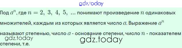 На страницах сайта gdz.today вы найдете учебный и вспомогательный материал, направленный на улучшения знаний школьной программы. ГДЗ - онлайн мир знаний §15. Что такое степень с натуральным показателем Решение. Глава 4. Степень с натуральным показателем и её свойства 1 Учебнику по Алгебре для 7 класса Мордкович Базовый уровень Мнемозина 2013