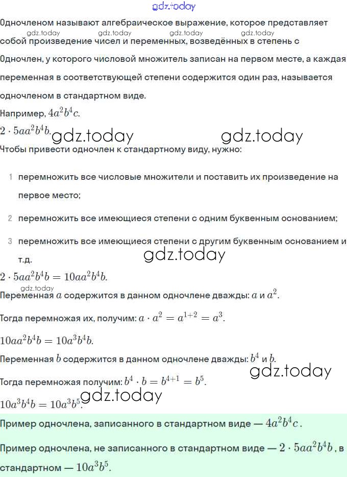 На страницах сайта gdz.today вы найдете учебный и вспомогательный материал, направленный на улучшения знаний школьной программы. ГДЗ - онлайн мир знаний §20. Понятие одночлена. Стандартный вид одночлена Решение. Глава 5. Одночлены. Арифметические операции над одночленами 4 Учебнику по Алгебре для 7 класса Мордкович Базовый уровень Мнемозина 2013