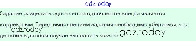 На страницах сайта gdz.today вы найдете учебный и вспомогательный материал, направленный на улучшения знаний школьной программы. ГДЗ - онлайн мир знаний §23. Деление одночлена на одночлен Решение. Глава 5. Одночлены. Арифметические операции над одночленами 3 Учебнику по Алгебре для 7 класса Мордкович Базовый уровень Мнемозина 2013