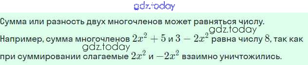 На страницах сайта gdz.today вы найдете учебный и вспомогательный материал, направленный на улучшения знаний школьной программы. ГДЗ - онлайн мир знаний §25. Сложение и вычитание многочленов Решение. Глава 6. Многочлены. Арифметические операции над многочленами 4 Учебнику по Алгебре для 7 класса Мордкович Базовый уровень Мнемозина 2013