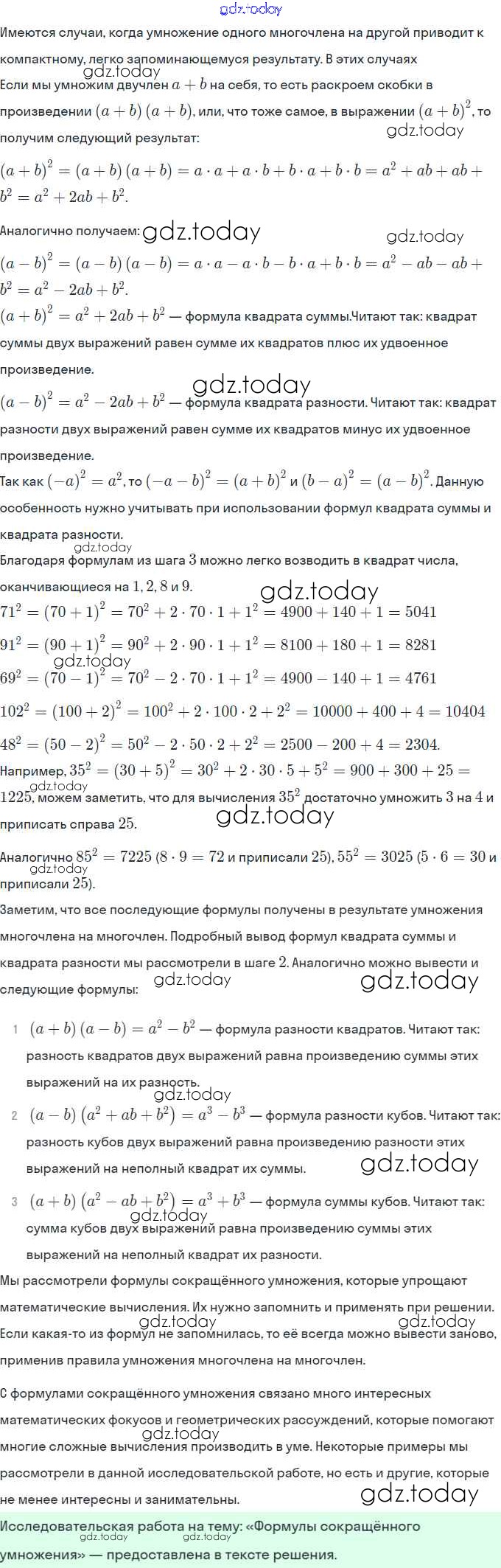 Ответы к Темы исследовательских работ Решение. Глава 6. Многочлены. Арифметические операции над многочленами 1 Учебнику по Алгебре для 7 класса Мордкович Базовый уровень Мнемозина 2013