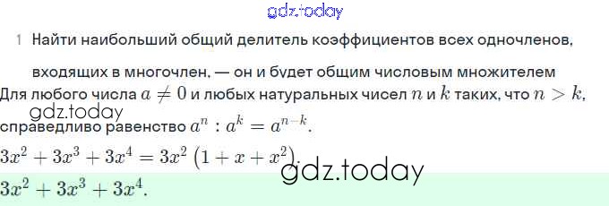 На страницах сайта gdz.today вы найдете учебный и вспомогательный материал, направленный на улучшения знаний школьной программы. ГДЗ - онлайн мир знаний §31. Вынесение общего множителя за скобки Решение. Глава 7. Разложение многочленов на множители 3 Учебнику по Алгебре для 7 класса Мордкович Базовый уровень Мнемозина 2013