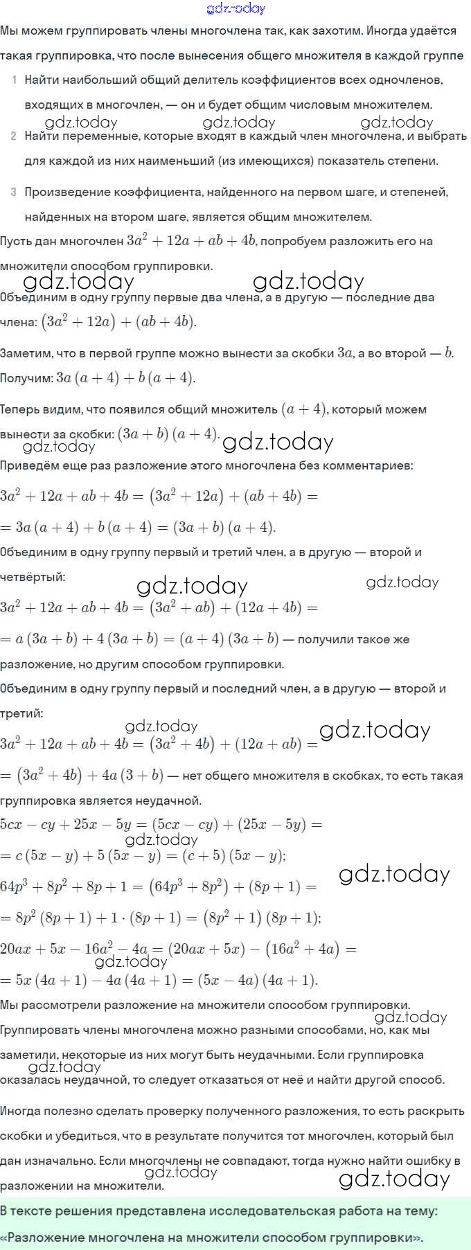 На страницах сайта gdz.today вы найдете учебный и вспомогательный материал, направленный на улучшения знаний школьной программы. ГДЗ - онлайн мир знаний Темы исследовательских работ Решение. Глава 7. Разложение многочленов на множители 1 Учебнику по Алгебре для 7 класса Мордкович Базовый уровень Мнемозина 2013