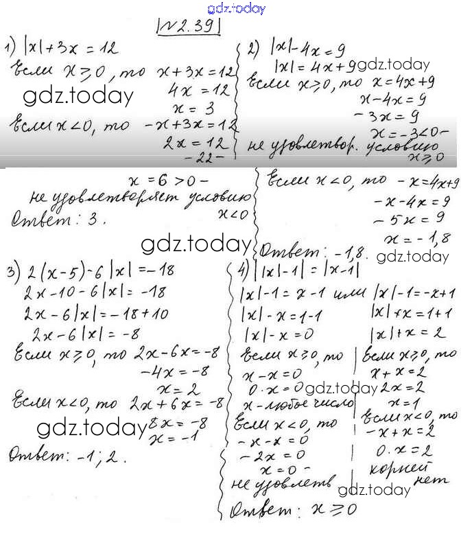 На страницах сайта gdz.today вы найдете учебный и вспомогательный материал, направленный на улучшения знаний школьной программы. ГДЗ - онлайн мир знаний Решение к §2 2.39 Учебнику по Алгебре для 7 класса Мерзляк, Поляков Углубленный уровень Вентана-граф Алгоритм успеха 2019