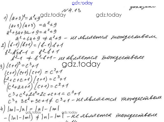 На страницах сайта gdz.today вы найдете учебный и вспомогательный материал, направленный на улучшения знаний школьной программы. ГДЗ - онлайн мир знаний Решение к §4 4.13 Учебнику по Алгебре для 7 класса Мерзляк, Поляков Углубленный уровень Вентана-граф Алгоритм успеха 2019