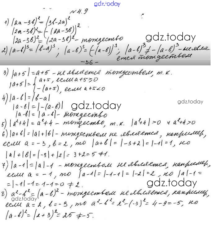 На страницах сайта gdz.today вы найдете учебный и вспомогательный материал, направленный на улучшения знаний школьной программы. ГДЗ - онлайн мир знаний Решение к §4 4.9 Учебнику по Алгебре для 7 класса Мерзляк, Поляков Углубленный уровень Вентана-граф Алгоритм успеха 2019