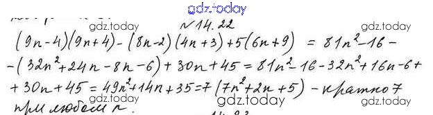 На страницах сайта gdz.today вы найдете учебный и вспомогательный материал, направленный на улучшения знаний школьной программы. ГДЗ - онлайн мир знаний Решение к §14 14.22 Учебнику по Алгебре для 7 класса Мерзляк, Поляков Углубленный уровень Вентана-граф Алгоритм успеха 2019