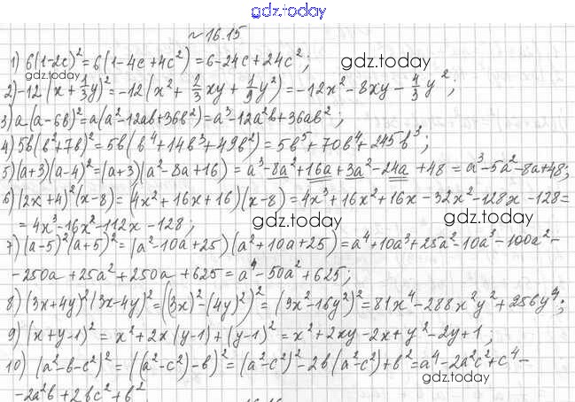 На страницах сайта gdz.today вы найдете учебный и вспомогательный материал, направленный на улучшения знаний школьной программы. ГДЗ - онлайн мир знаний Решение к §16 16.15 Учебнику по Алгебре для 7 класса Мерзляк, Поляков Углубленный уровень Вентана-граф Алгоритм успеха 2019