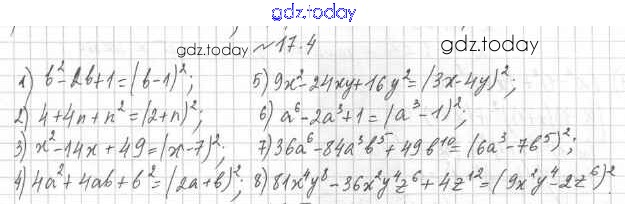 На страницах сайта gdz.today вы найдете учебный и вспомогательный материал, направленный на улучшения знаний школьной программы. ГДЗ - онлайн мир знаний Решение к §17 17.4 Учебнику по Алгебре для 7 класса Мерзляк, Поляков Углубленный уровень Вентана-граф Алгоритм успеха 2019