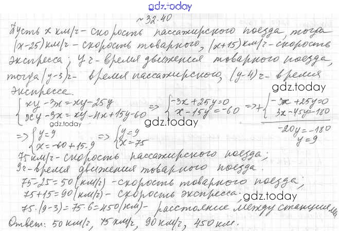 Ответы к Решение к §32 32.40 Учебнику по Алгебре для 7 класса Мерзляк, Поляков Углубленный уровень Вентана-граф Алгоритм успеха 2019