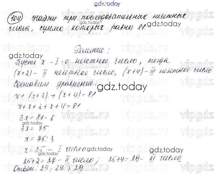 Ответы к Решение к упражнениям 104 Учебнику по Алгебре для 7 класса Колягин, Ткачева Просвещение УМК 2012