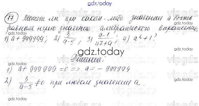На страницах сайта gdz.today вы найдете учебный и вспомогательный материал, направленный на улучшения знаний школьной программы. ГДЗ - онлайн мир знаний Решение к упражнениям 17 Учебнику по Алгебре для 7 класса Колягин, Ткачева Просвещение УМК 2012