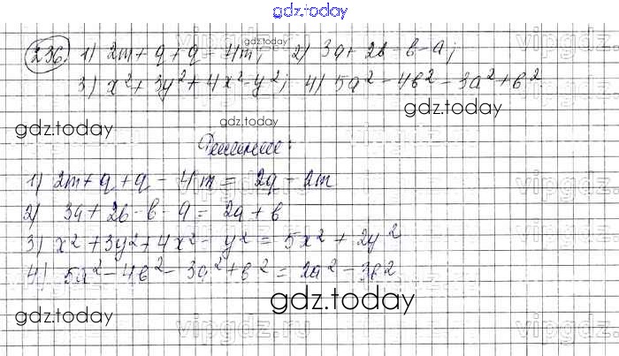 На страницах сайта gdz.today вы найдете учебный и вспомогательный материал, направленный на улучшения знаний школьной программы. ГДЗ - онлайн мир знаний Решение к упражнениям 236 Учебнику по Алгебре для 7 класса Колягин, Ткачева Просвещение УМК 2012