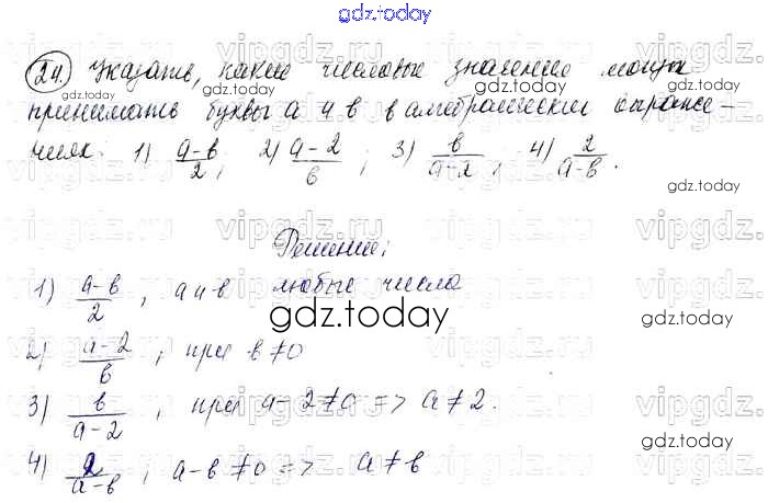 На страницах сайта gdz.today вы найдете учебный и вспомогательный материал, направленный на улучшения знаний школьной программы. ГДЗ - онлайн мир знаний Решение к упражнениям 24 Учебнику по Алгебре для 7 класса Колягин, Ткачева Просвещение УМК 2012