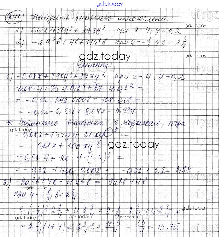 На страницах сайта gdz.today вы найдете учебный и вспомогательный материал, направленный на улучшения знаний школьной программы. ГДЗ - онлайн мир знаний Решение к упражнениям 241 Учебнику по Алгебре для 7 класса Колягин, Ткачева Просвещение УМК 2012