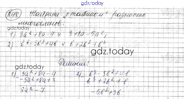 На страницах сайта gdz.today вы найдете учебный и вспомогательный материал, направленный на улучшения знаний школьной программы. ГДЗ - онлайн мир знаний Решение к упражнениям 248 Учебнику по Алгебре для 7 класса Колягин, Ткачева Просвещение УМК 2012