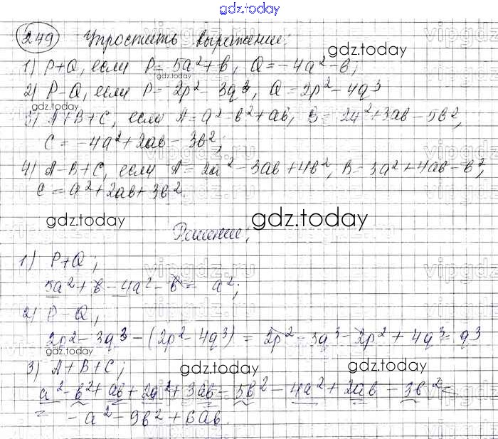 На страницах сайта gdz.today вы найдете учебный и вспомогательный материал, направленный на улучшения знаний школьной программы. ГДЗ - онлайн мир знаний Решение к упражнениям 249 Учебнику по Алгебре для 7 класса Колягин, Ткачева Просвещение УМК 2012