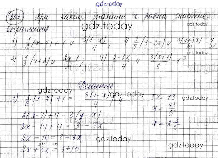 Ответы к Решение к упражнениям 262 Учебнику по Алгебре для 7 класса Колягин, Ткачева Просвещение УМК 2012