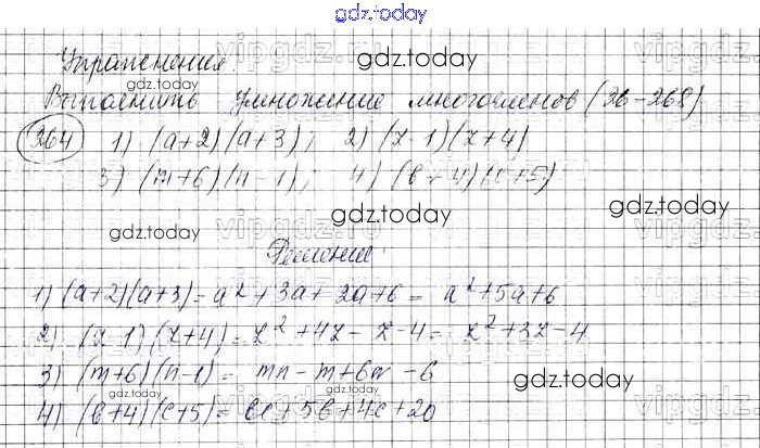 На страницах сайта gdz.today вы найдете учебный и вспомогательный материал, направленный на улучшения знаний школьной программы. ГДЗ - онлайн мир знаний Решение к упражнениям 264 Учебнику по Алгебре для 7 класса Колягин, Ткачева Просвещение УМК 2012