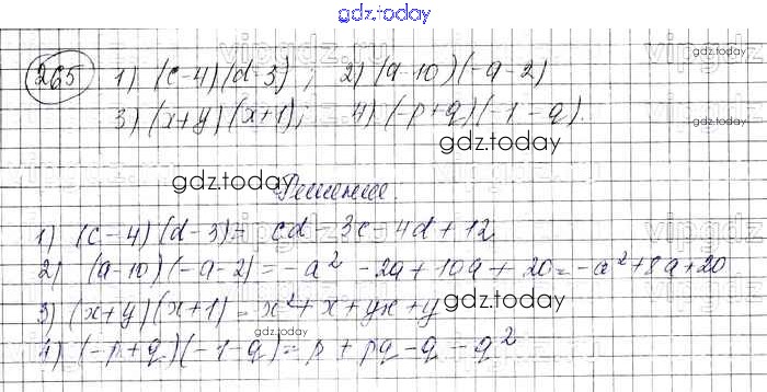На страницах сайта gdz.today вы найдете учебный и вспомогательный материал, направленный на улучшения знаний школьной программы. ГДЗ - онлайн мир знаний Решение к упражнениям 265 Учебнику по Алгебре для 7 класса Колягин, Ткачева Просвещение УМК 2012