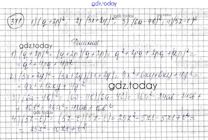 На страницах сайта gdz.today вы найдете учебный и вспомогательный материал, направленный на улучшения знаний школьной программы. ГДЗ - онлайн мир знаний Решение к упражнениям 371 Учебнику по Алгебре для 7 класса Колягин, Ткачева Просвещение УМК 2012