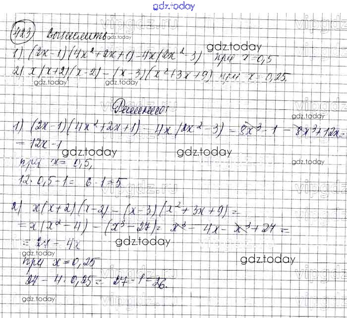 На страницах сайта gdz.today вы найдете учебный и вспомогательный материал, направленный на улучшения знаний школьной программы. ГДЗ - онлайн мир знаний Решение к упражнениям 423 Учебнику по Алгебре для 7 класса Колягин, Ткачева Просвещение УМК 2012
