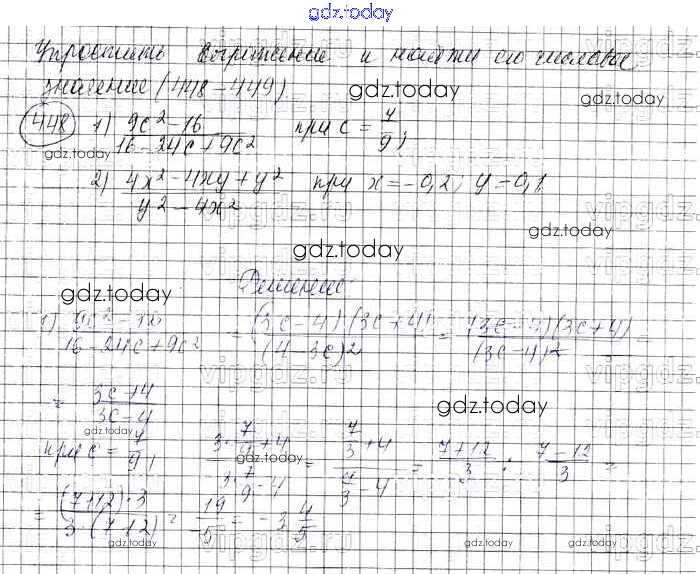 На страницах сайта gdz.today вы найдете учебный и вспомогательный материал, направленный на улучшения знаний школьной программы. ГДЗ - онлайн мир знаний Решение к упражнениям 448 Учебнику по Алгебре для 7 класса Колягин, Ткачева Просвещение УМК 2012