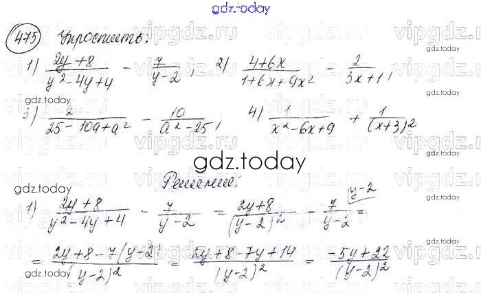 На страницах сайта gdz.today вы найдете учебный и вспомогательный материал, направленный на улучшения знаний школьной программы. ГДЗ - онлайн мир знаний Решение к упражнениям 475 Учебнику по Алгебре для 7 класса Колягин, Ткачева Просвещение УМК 2012