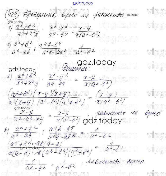 На страницах сайта gdz.today вы найдете учебный и вспомогательный материал, направленный на улучшения знаний школьной программы. ГДЗ - онлайн мир знаний Решение к упражнениям 489 Учебнику по Алгебре для 7 класса Колягин, Ткачева Просвещение УМК 2012