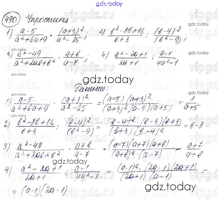 На страницах сайта gdz.today вы найдете учебный и вспомогательный материал, направленный на улучшения знаний школьной программы. ГДЗ - онлайн мир знаний Решение к упражнениям 490 Учебнику по Алгебре для 7 класса Колягин, Ткачева Просвещение УМК 2012