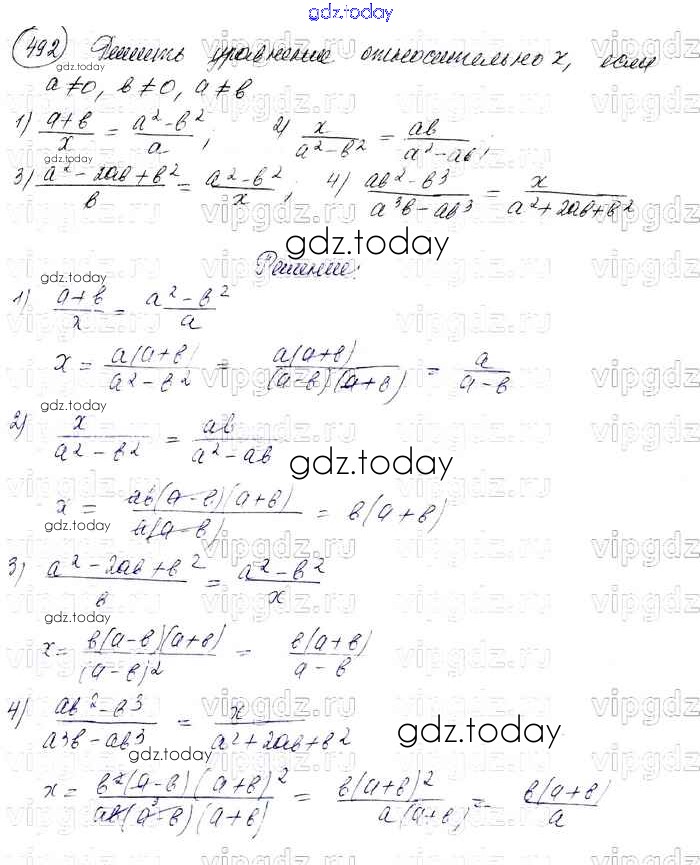 На страницах сайта gdz.today вы найдете учебный и вспомогательный материал, направленный на улучшения знаний школьной программы. ГДЗ - онлайн мир знаний Решение к упражнениям 492 Учебнику по Алгебре для 7 класса Колягин, Ткачева Просвещение УМК 2012