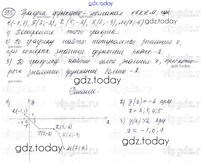 На страницах сайта gdz.today вы найдете учебный и вспомогательный материал, направленный на улучшения знаний школьной программы. ГДЗ - онлайн мир знаний Решение к упражнениям 555 Учебнику по Алгебре для 7 класса Колягин, Ткачева Просвещение УМК 2012