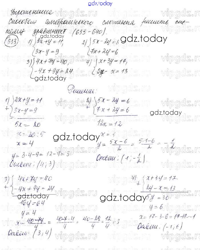 На страницах сайта gdz.today вы найдете учебный и вспомогательный материал, направленный на улучшения знаний школьной программы. ГДЗ - онлайн мир знаний Решение к упражнениям 633 Учебнику по Алгебре для 7 класса Колягин, Ткачева Просвещение УМК 2012