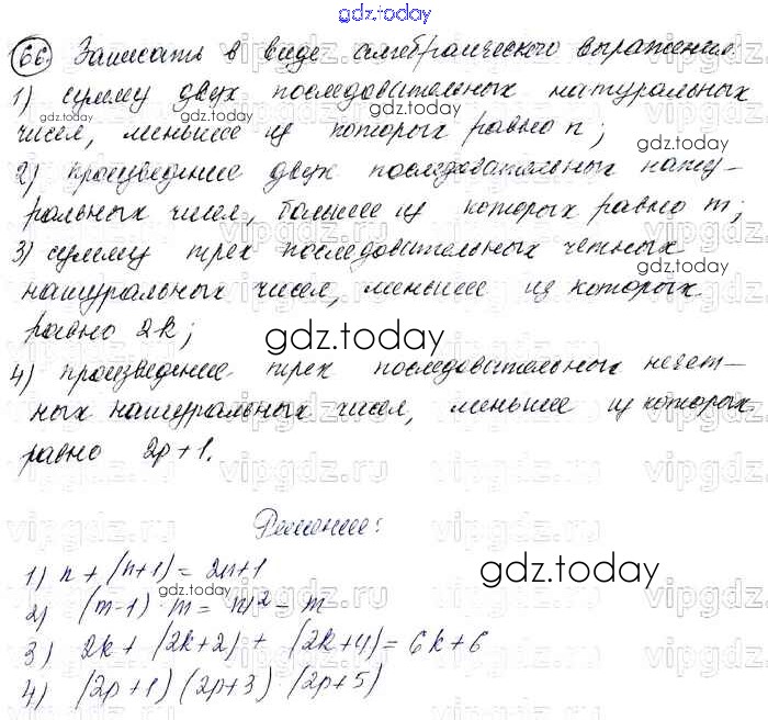 На страницах сайта gdz.today вы найдете учебный и вспомогательный материал, направленный на улучшения знаний школьной программы. ГДЗ - онлайн мир знаний Решение к упражнениям 66 Учебнику по Алгебре для 7 класса Колягин, Ткачева Просвещение УМК 2012