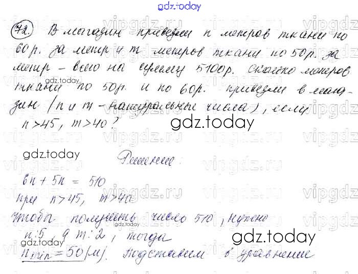 Ответы к Решение к упражнениям 72 Учебнику по Алгебре для 7 класса Колягин, Ткачева Просвещение УМК 2012