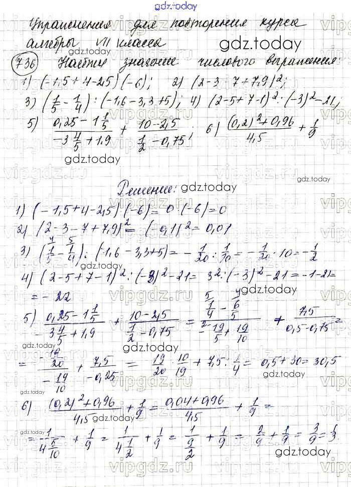 На страницах сайта gdz.today вы найдете учебный и вспомогательный материал, направленный на улучшения знаний школьной программы. ГДЗ - онлайн мир знаний Решение к упражнениям 736 Учебнику по Алгебре для 7 класса Колягин, Ткачева Просвещение УМК 2012