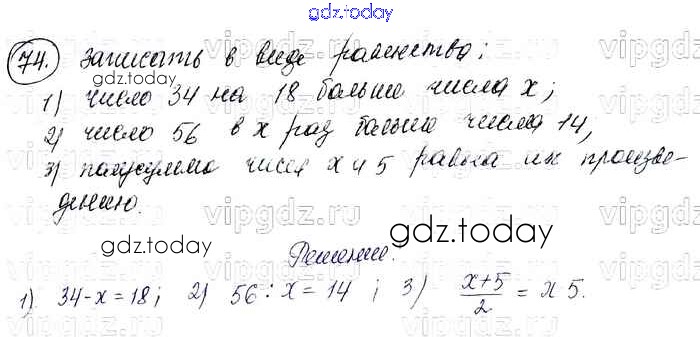 Ответы к Решение к упражнениям 74 Учебнику по Алгебре для 7 класса Колягин, Ткачева Просвещение УМК 2012