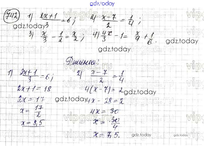 Ответы к Решение к упражнениям 742 Учебнику по Алгебре для 7 класса Колягин, Ткачева Просвещение УМК 2012