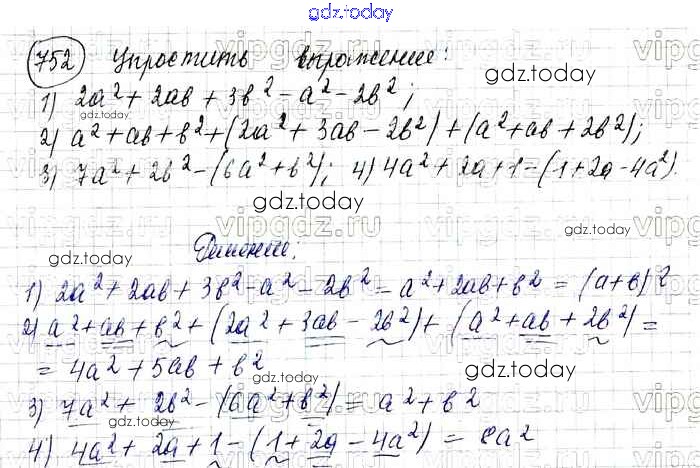 На страницах сайта gdz.today вы найдете учебный и вспомогательный материал, направленный на улучшения знаний школьной программы. ГДЗ - онлайн мир знаний Решение к упражнениям 752 Учебнику по Алгебре для 7 класса Колягин, Ткачева Просвещение УМК 2012