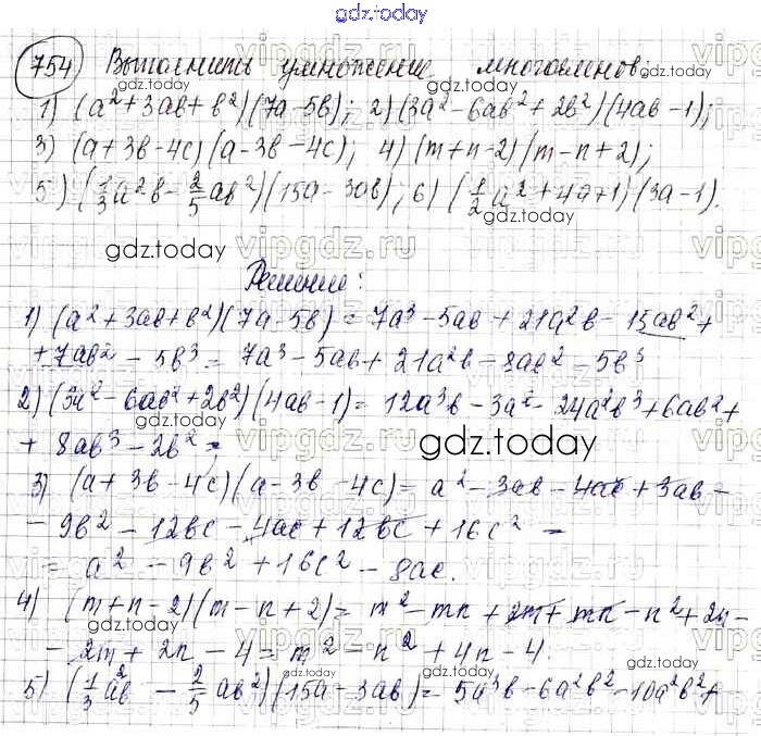На страницах сайта gdz.today вы найдете учебный и вспомогательный материал, направленный на улучшения знаний школьной программы. ГДЗ - онлайн мир знаний Решение к упражнениям 754 Учебнику по Алгебре для 7 класса Колягин, Ткачева Просвещение УМК 2012