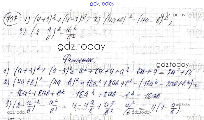 На страницах сайта gdz.today вы найдете учебный и вспомогательный материал, направленный на улучшения знаний школьной программы. ГДЗ - онлайн мир знаний Решение к упражнениям 757 Учебнику по Алгебре для 7 класса Колягин, Ткачева Просвещение УМК 2012