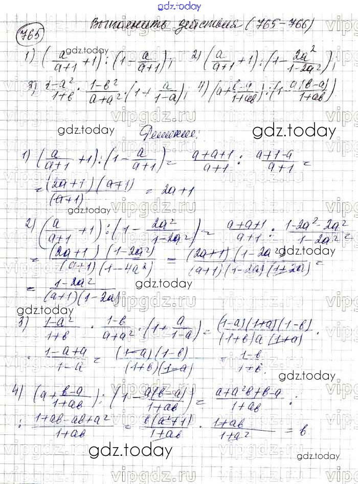 На страницах сайта gdz.today вы найдете учебный и вспомогательный материал, направленный на улучшения знаний школьной программы. ГДЗ - онлайн мир знаний Решение к упражнениям 765 Учебнику по Алгебре для 7 класса Колягин, Ткачева Просвещение УМК 2012
