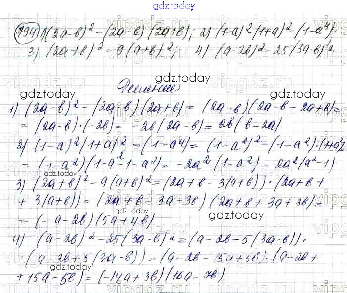 На страницах сайта gdz.today вы найдете учебный и вспомогательный материал, направленный на улучшения знаний школьной программы. ГДЗ - онлайн мир знаний Решение к упражнениям 794 Учебнику по Алгебре для 7 класса Колягин, Ткачева Просвещение УМК 2012