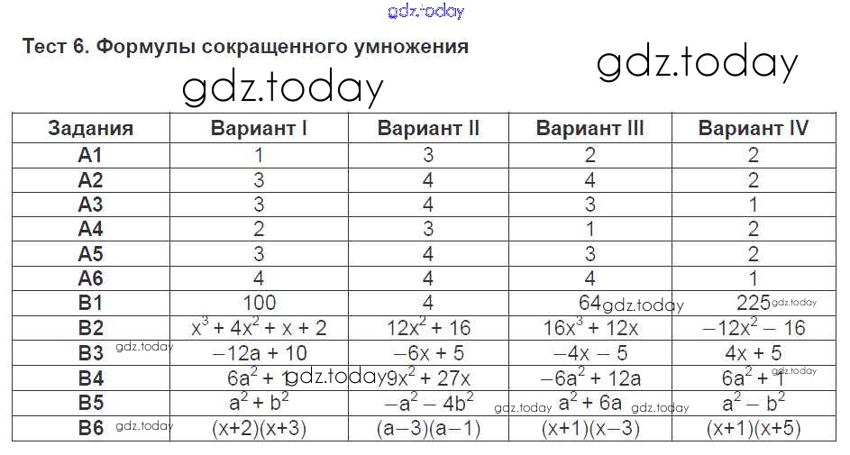 На страницах сайта gdz.today вы найдете учебный и вспомогательный материал, направленный на улучшения знаний школьной программы. ГДЗ - онлайн мир знаний Решение к тестам 6 Тестам по Алгебре для 7 класса Журавлев, Ермаков Экзамен УМК 2013